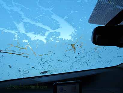 A closer view. The needle just barely misses the binding when going straight, then swings over onto the binding to hold it in place.
