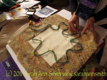 Another student wanted to use some Asian-inspired fabrics and do a moon / pond scene. She adapted my techniques to her design--way cool!