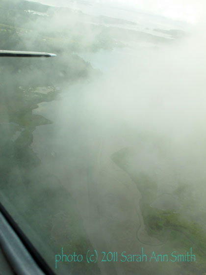 To get anywhere, I either drive a long way and spend the night (more expensive for the guild) to catch a plane out of Portland or Boston, OR I leave from Rockland/Owl’s Head, which is about 30 minutes from home. Mo bettah! Still not inexpensive, but less costly than an overnight. The plane is small — here is a blogpost from last May — perhaps 9 passengers total, one of whom sits next to the pilot.